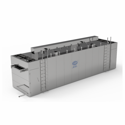 設(shè)備主要?于?制品、?制品等休閑?品,主要對產(chǎn)品進(jìn)?烘?/烘烤、?冷(選配?藝段),烘?采?蒸汽換熱器進(jìn)?換熱,烘烤采?遠(yuǎn)紅外線進(jìn)?加熱,產(chǎn)品在烘?區(qū)域、烘烤區(qū)域進(jìn)?往返連續(xù)式輸送,以達(dá)到所需要?藝時間,整體加熱過程為?動檢測溫度恒溫,?動檢測濕度排濕,內(nèi)部?能?動循環(huán),節(jié)約能耗,選配?藝段